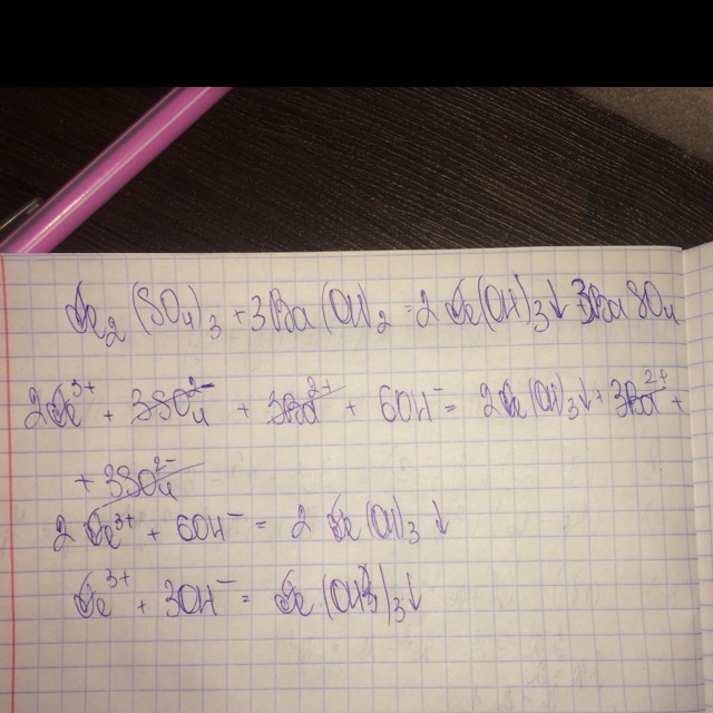 ПОМОГИТЕ!!! ПОЖАЛУЙСТА!! Написать молекулярное, полное и сокращенное ионные уравнения реакции между растворами сульфата железа(III) и гидроксида бария