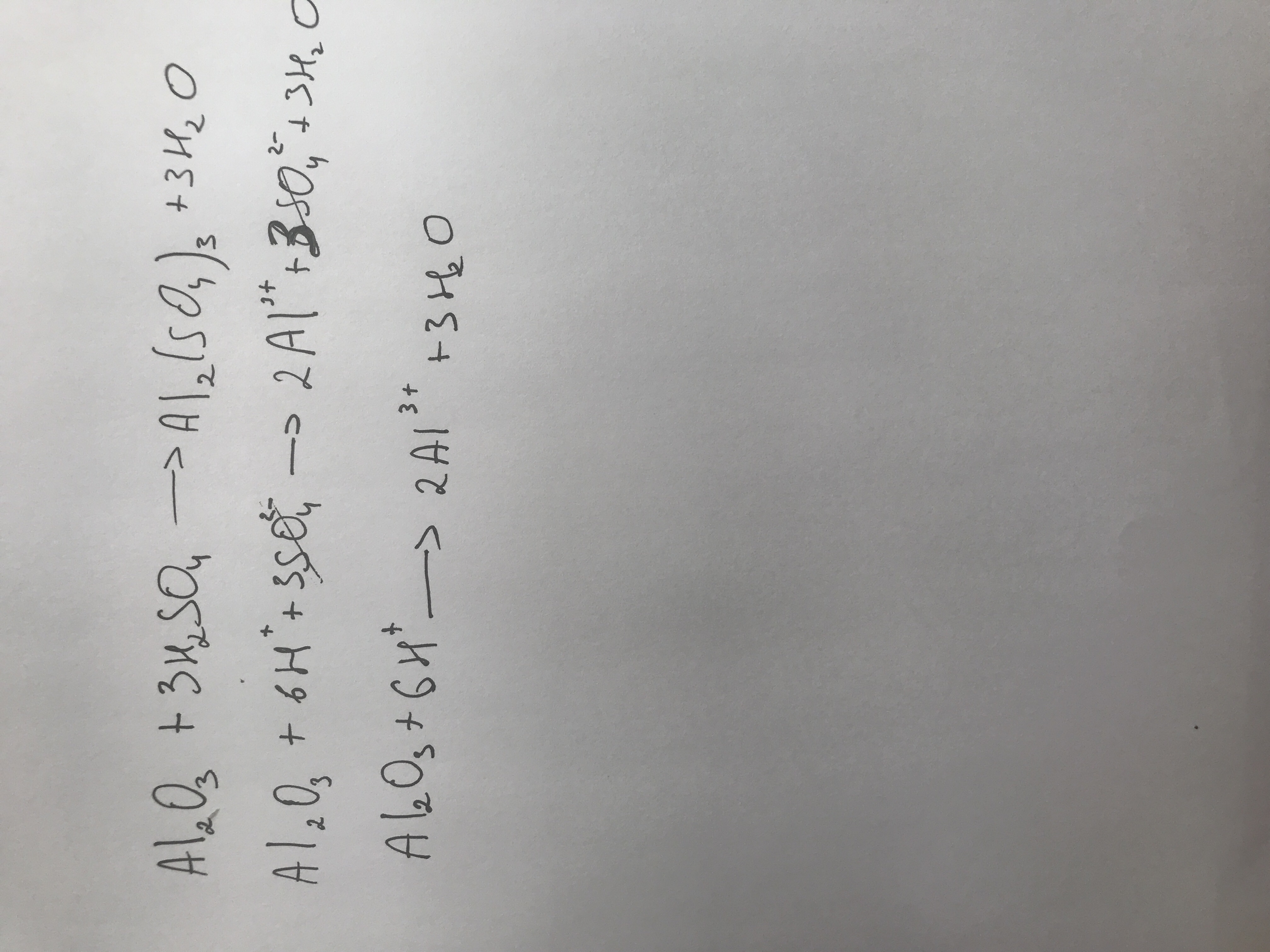 к молекулярному уравнению составьте полное и сокращенное ионно-молекулярное уравнение: AL2O3+3H2SO4=AL2(SO4)3+3H2O