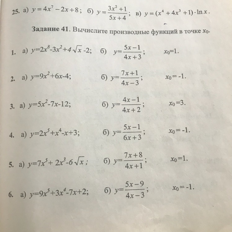 б)y'=(5*(6х+3)-6*(5x-1))/(6x+3)^2