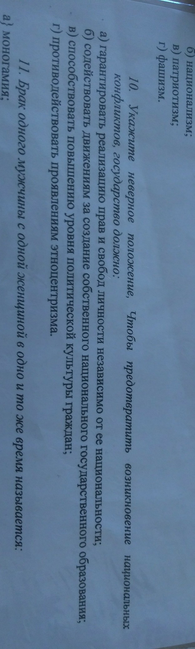 5) моногамная семья — брак, в котором один мужчина живёт с одной женщиной, но брачные узы могут быть расторгнуты только по воле мужа;