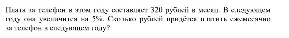 2) 320 + 16 = 336 (руб) будет необходимо заплатить за телефон в следующем месяце.