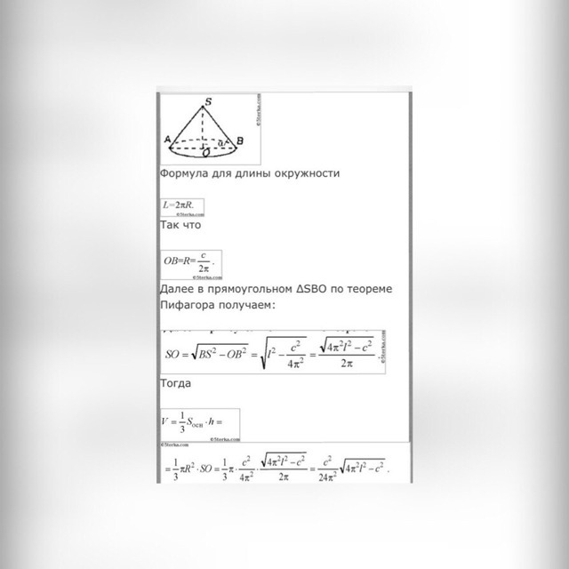 Длина образующей косинуса равна 4 см, а длина окружности основания равна 6пи м. Найти объем конуса