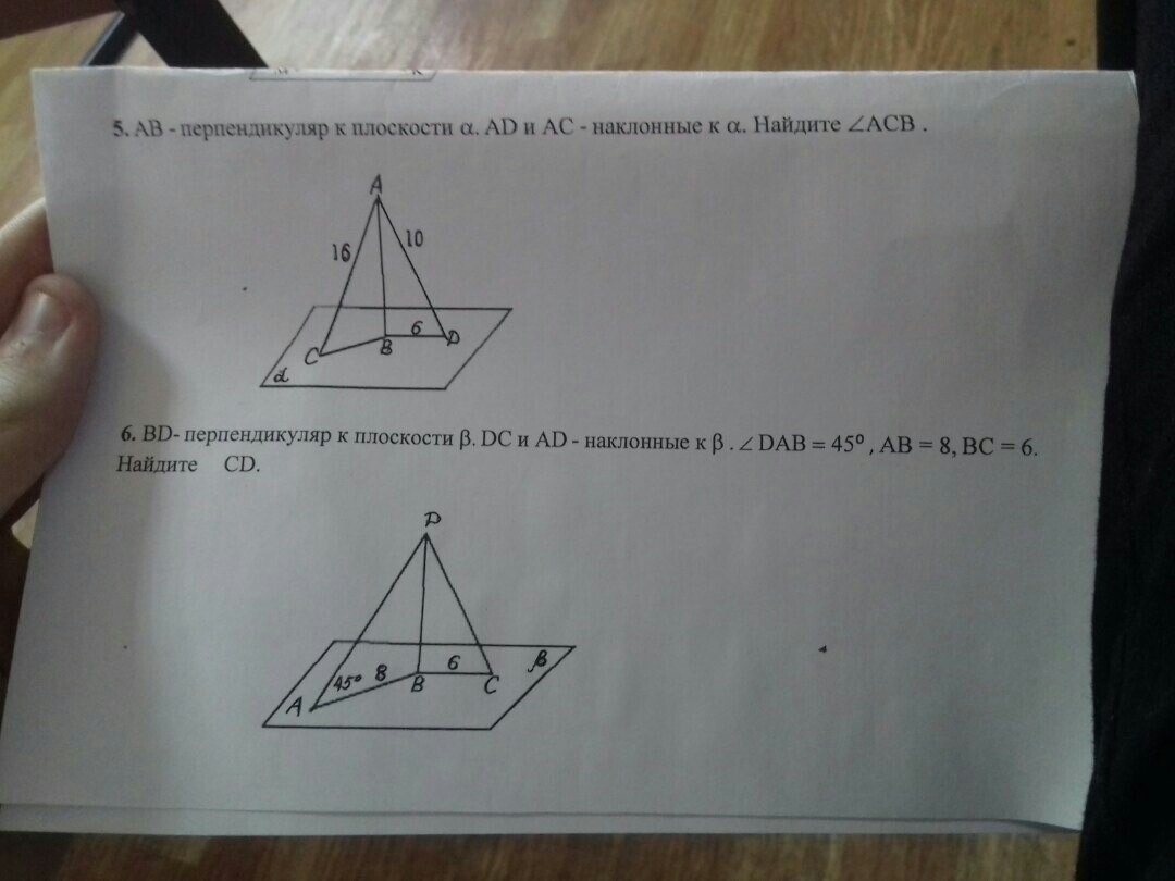 6. BD = AB· tg 45° = 8 · 1 = 8