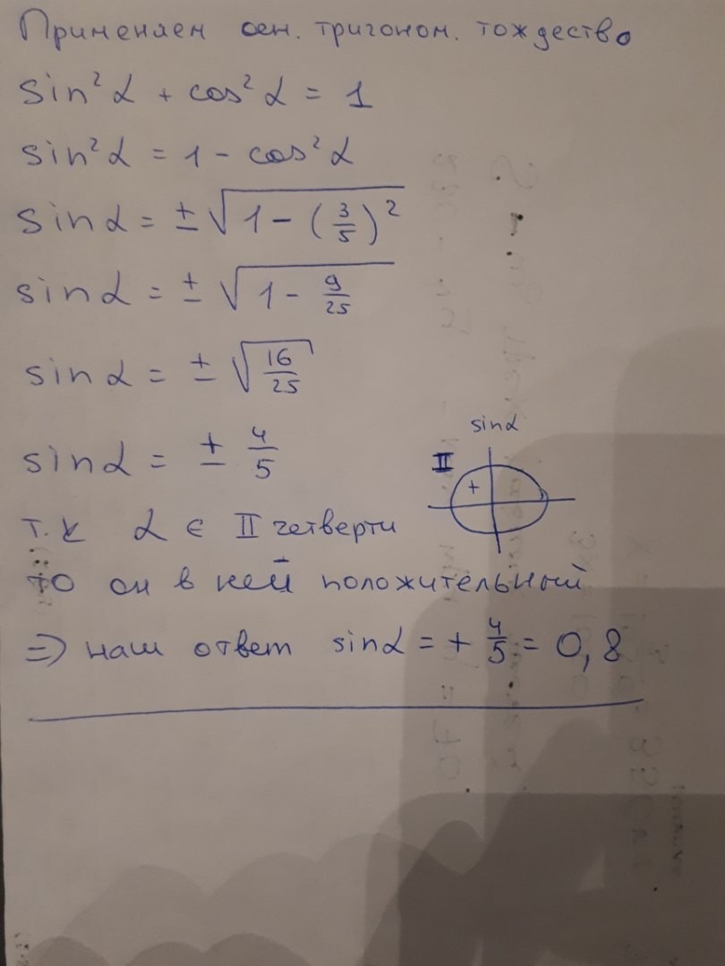 Ответ есть, sin a= 0,8 НУЖНО ПОДРОБНОЕ РЕШЕНИЕ!!