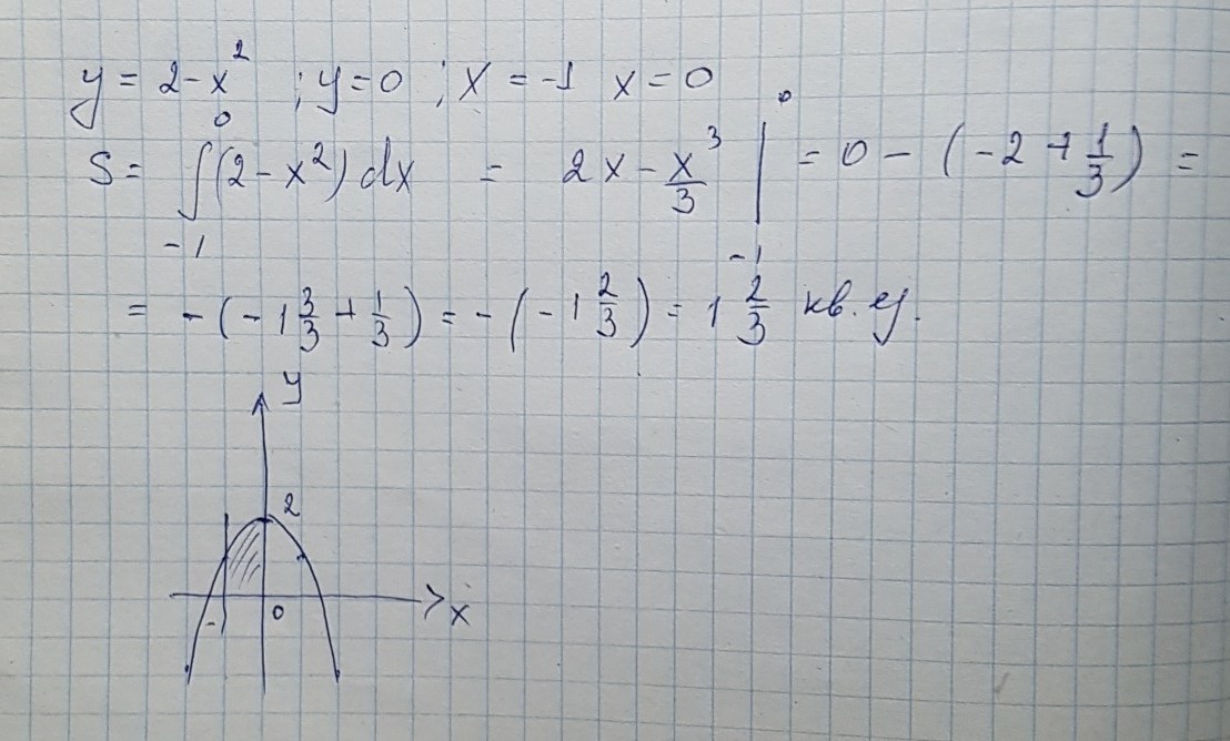 найдите площадь фигуры, ограниченной линиями y=2-x2; y=0; x=-1; x=0