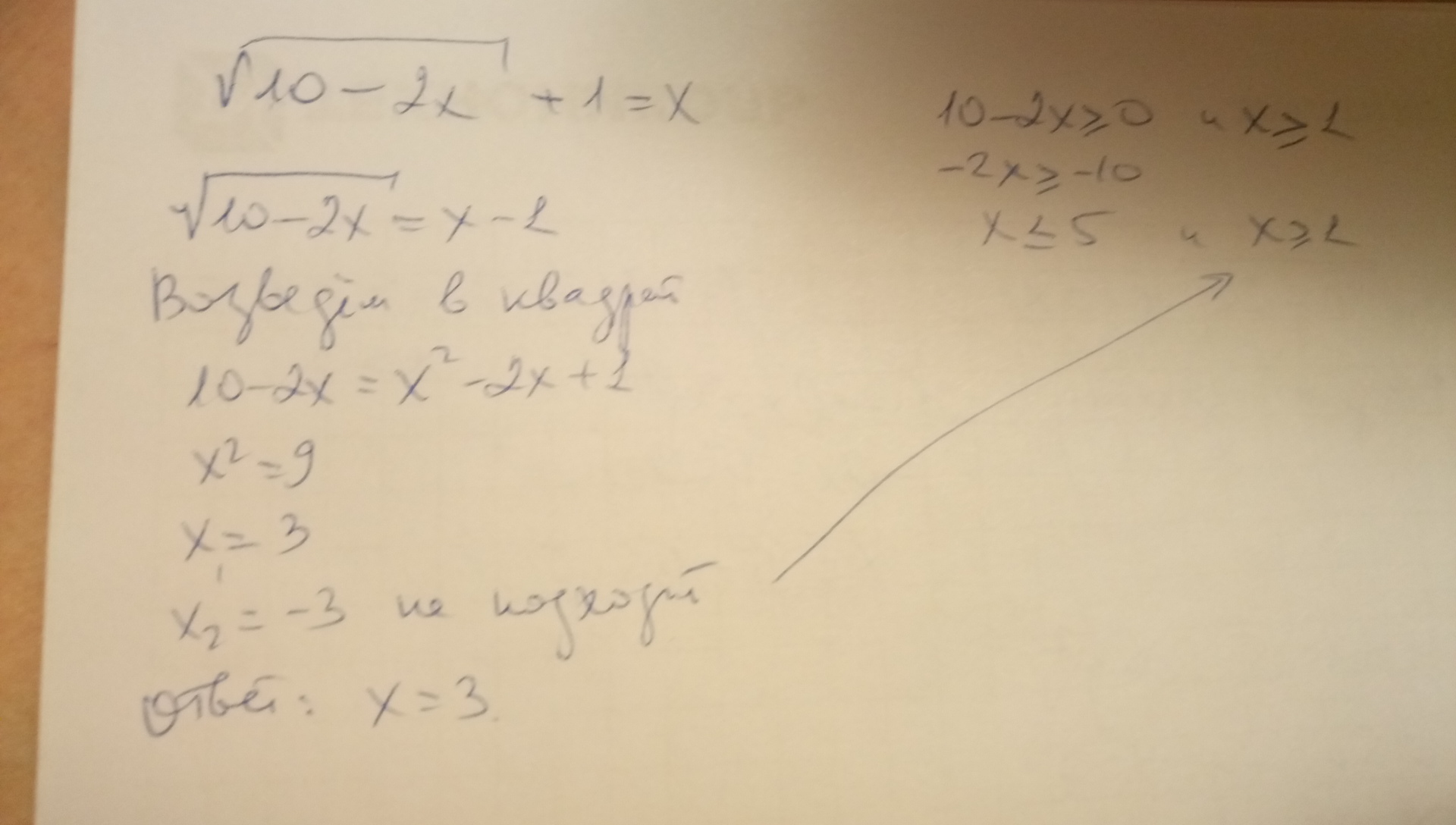 получится 10-2х+1=х^2 ,потом перенеси все на одну сторону потом дискриминант и дальше по классике
