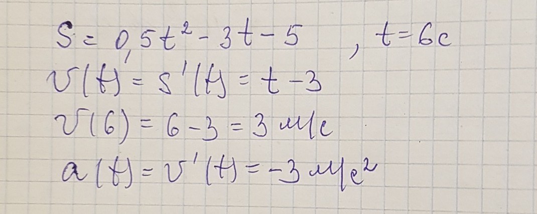 Уравнение движения S=0,5t2-3t-5.