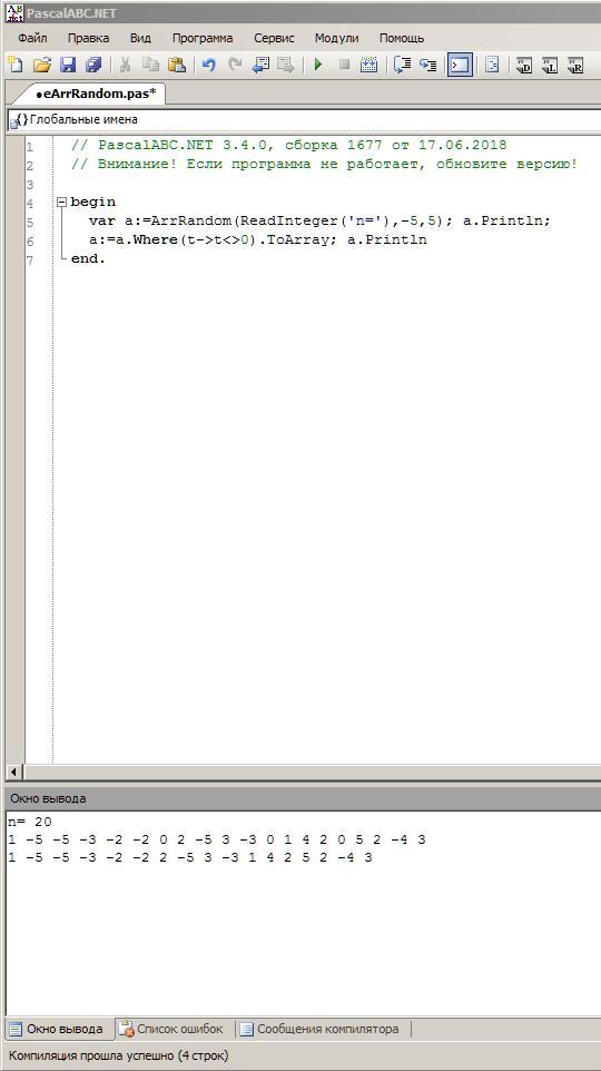 var a:=ArrRandom(ReadInteger('n='),-5,5); a.Println;