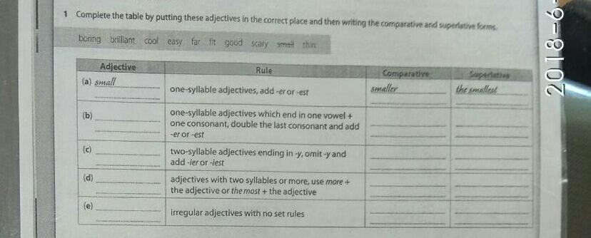 a) small - smaller - the smallest; cool - cooler - the coolest