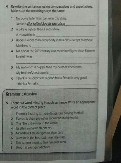 5) My brothers bedroom is smaller than my.