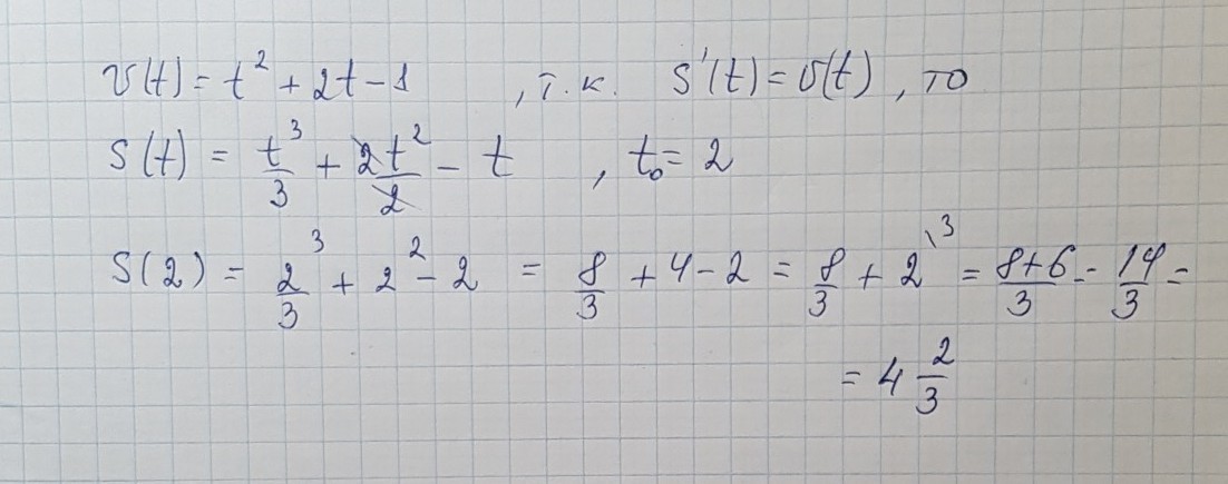 S(t)=t³/3+2·t²/2-t=t³/3+t²-t