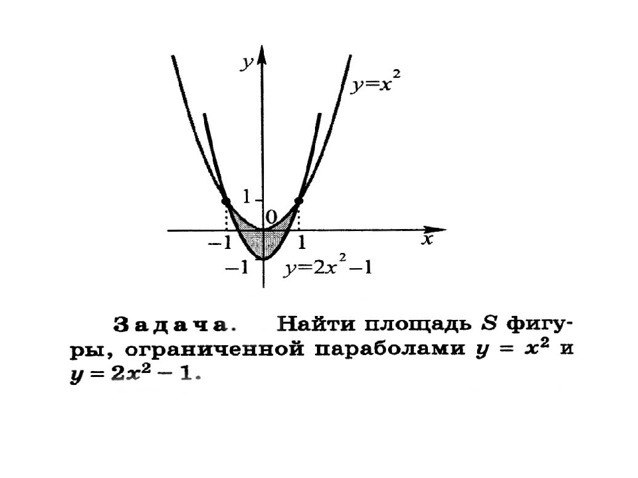 S =  intlimits^1_{-1} {(x^2-2x^2+1)} , dx =(- frac{x^3}{3}+x)|_{-1}^1= \\