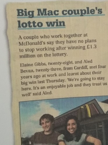 Элейн Гиббс, 28 лет, и Алед Биван, 23 года, из Кардиффа, познакомились 4 года назад на работе. О своем крупном выигрыше они узнали в прошлый четверг. «Мы собираемся остаться здесь. Работа нам нравится, и к нам хорошо относятся» , — рассказал Алед.