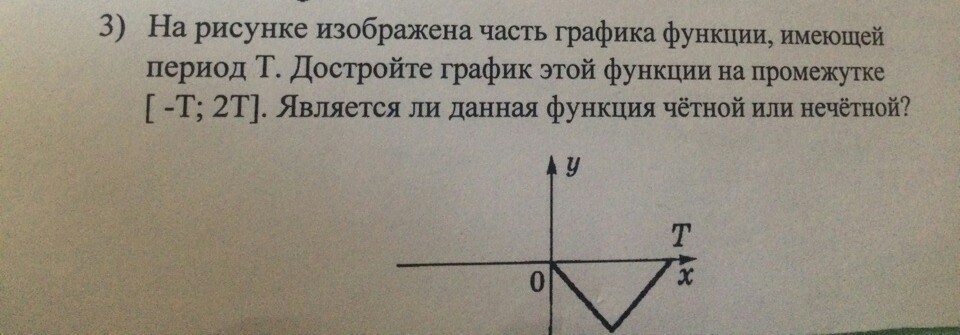 Раз период T, то достаточно просто повторять данный кусок графика. Данная функция является четной, поскольку все ее значения лежат в промежутке [0;-∞); То есть f(x) = f(-x)