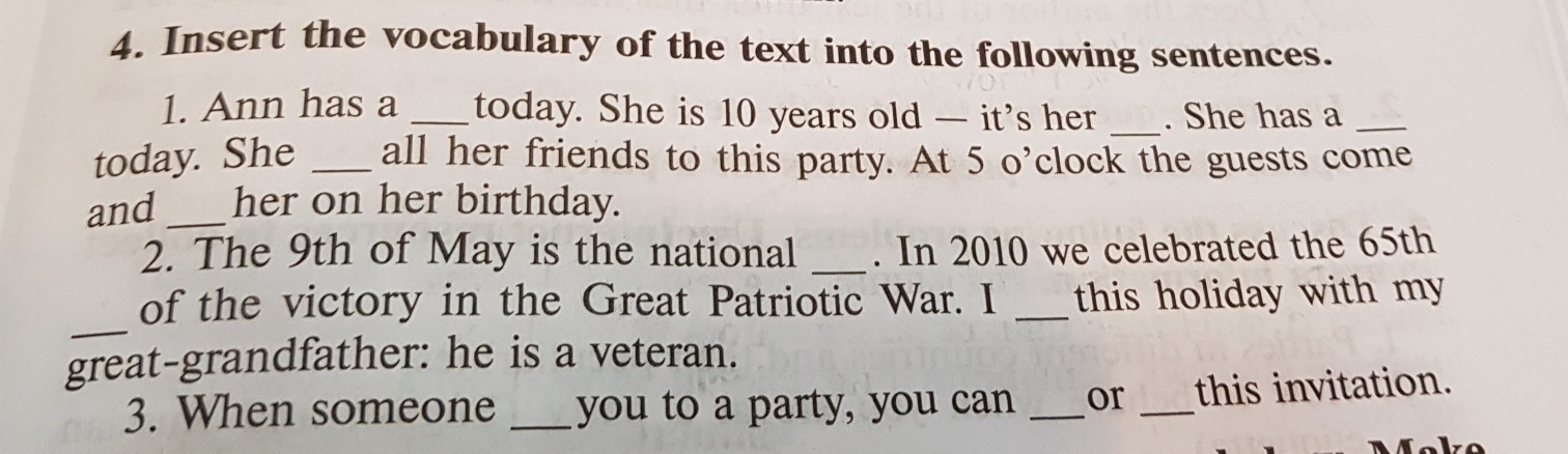 1. Birthday. Jubilee. Party. Invited. Congratulate.