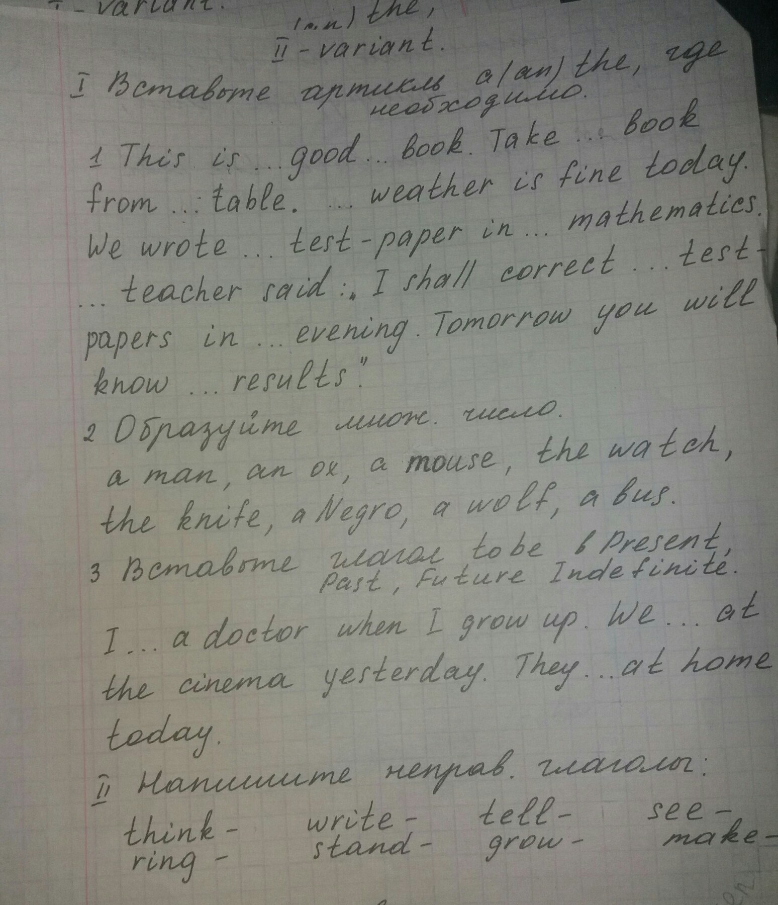 |.This is a good book. Take the book from table. The weather is fine today. We wrote a test-paper in mathematics.The teacher said: "I shall correct the test-papers in evening". Tomorrow you will know the results.