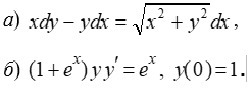 Обыкновенные дифференциальные уравнения первого порядка: а) найти общее решение; б) решить задачу Коши.