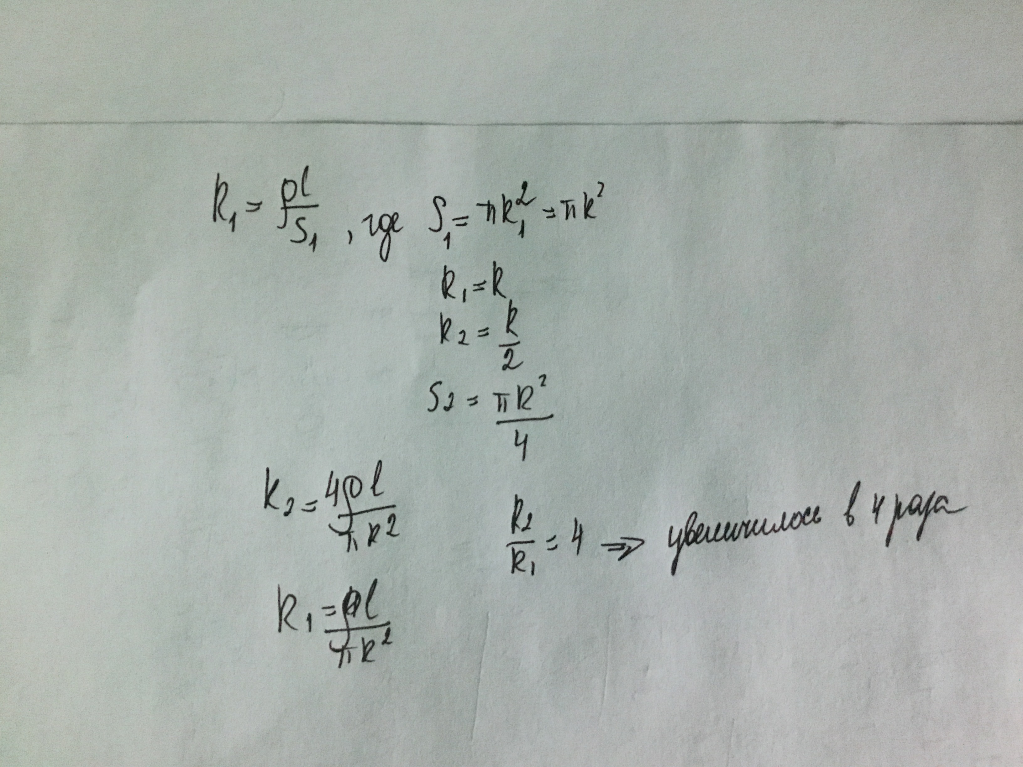 Приведена формула для нахождения сопротивления проводника. Затем площадь сечения. Из них выражаешь соотношение и находишь