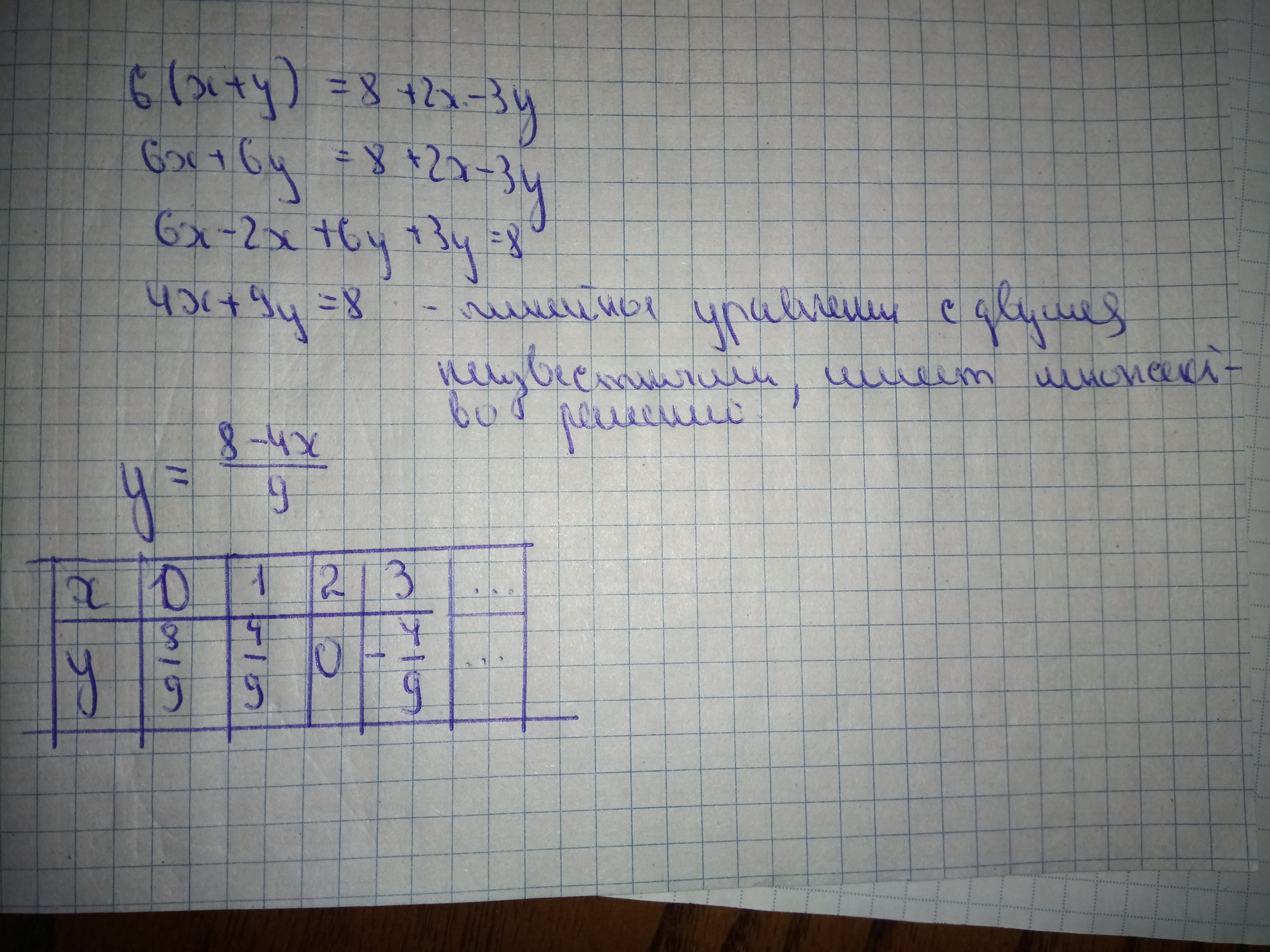 Уравнение с двумя неизвестными. Данное уравнение линейное, имеет множество решений. Под х поставляем любые числа.