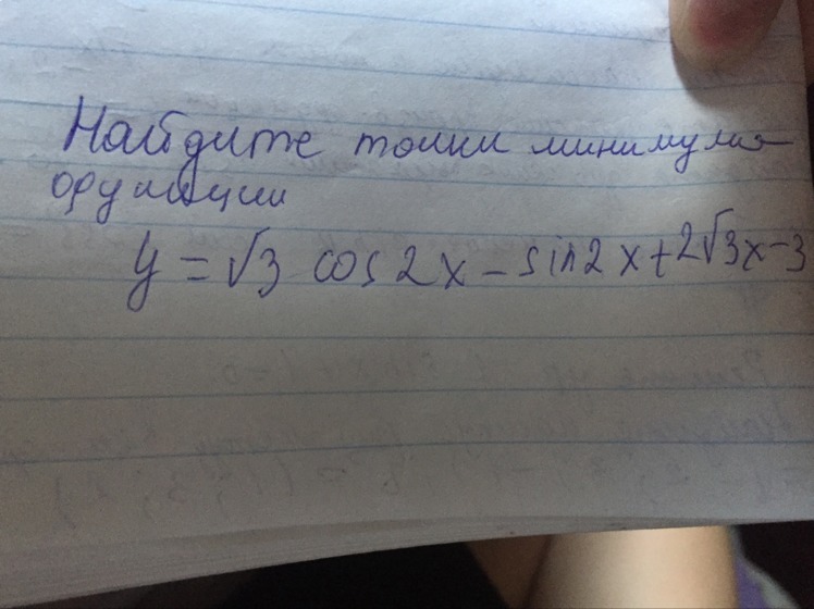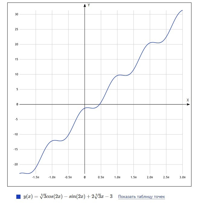 y(-pi/12)=√3*cos(-pi/6)-sin(-pi/6)+2√3*(-pi/12)-3=3/2+1/2-0.9-3=-1.9-точка локального минимума