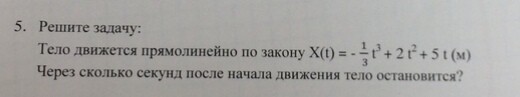 v(t) = Х '(t) = -t² + 4t + 5 = 0 осталось найти t...