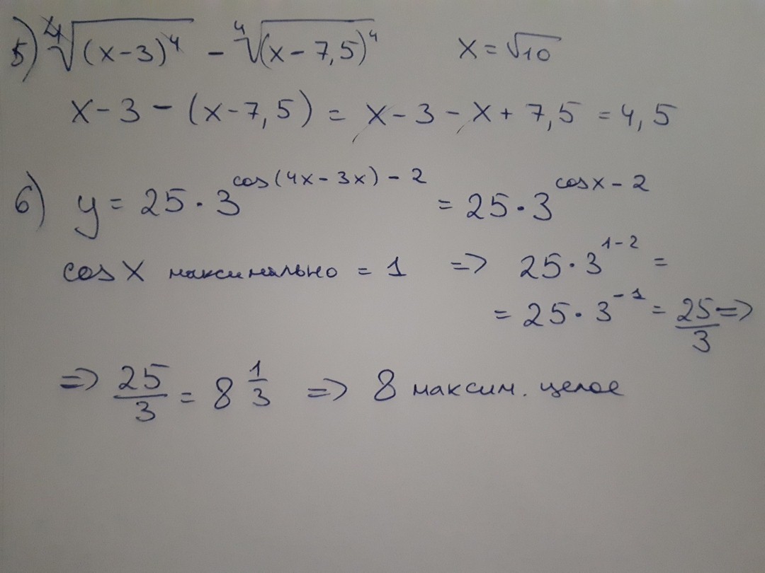 Вообще задание 5 должно быть с модулем после снятия степеней, но в таком случае ни один ответ не подойдет, поэтому сделала без него.