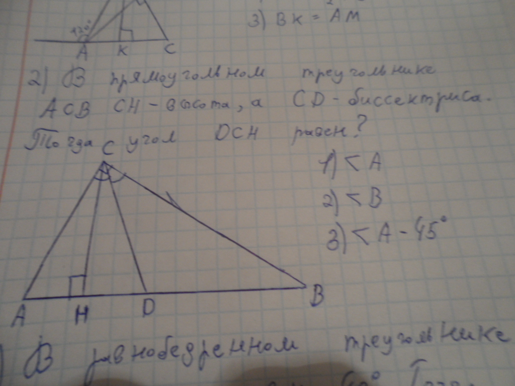 2) 3 (т.к ∠HCB = ∠A, а ∠DCB = 45°).