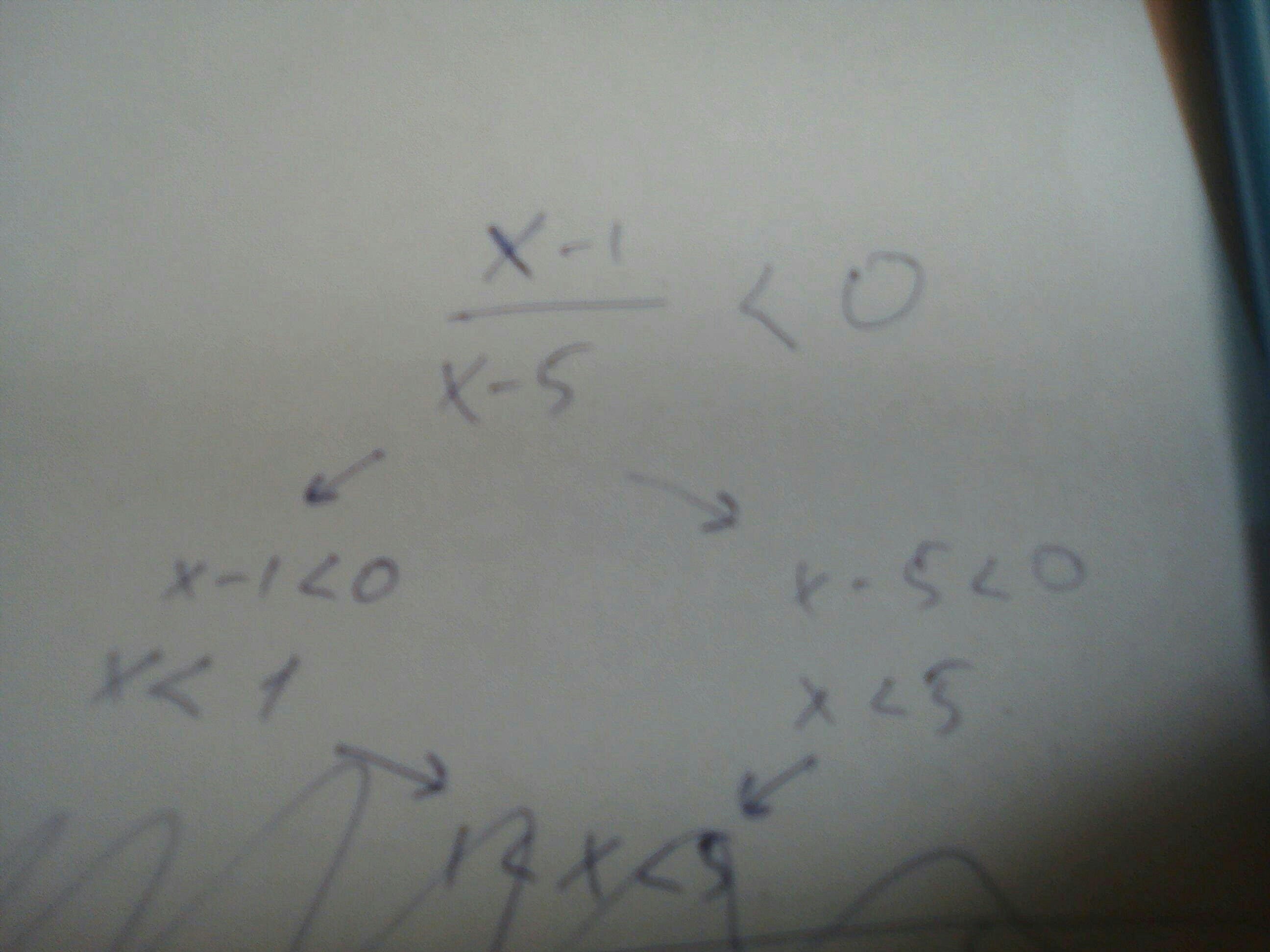 если х будет меньше 1 , то и числитель и знаменатель обратятся в отрицательные числа и их частно будет больше 0 , а если х будет больше 5 то и числитель, и знаменатель примут положительное значение, чего мы не можем допустить конечно