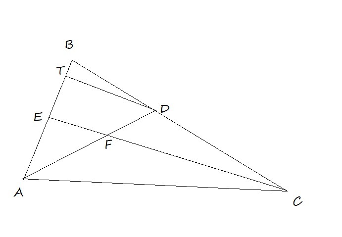 132. Проведем прямую DT параллельную CE; Пусть BE = 2x, AE = x, BD = 6y, DC = y; Поскольку треугольники BTD и BEC подобны, BT/ET = 6, значит TE = 2x/7; Отсюда получаем TD/EF = 9/7⇔EF/TD = 7/9, а TD/EC = 6/7; Перемножим два последних равенства: EF/EC = 6/9; Значит EF/FC = 6/3 = 2; Аналогично, можно было решать по теореме Менелая.