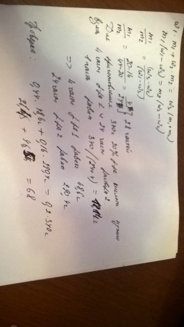 Сколько потребуется г. 44%-го и 16%-го растворов кислоты, чтобы получить 340 г. 20%-го раствора?