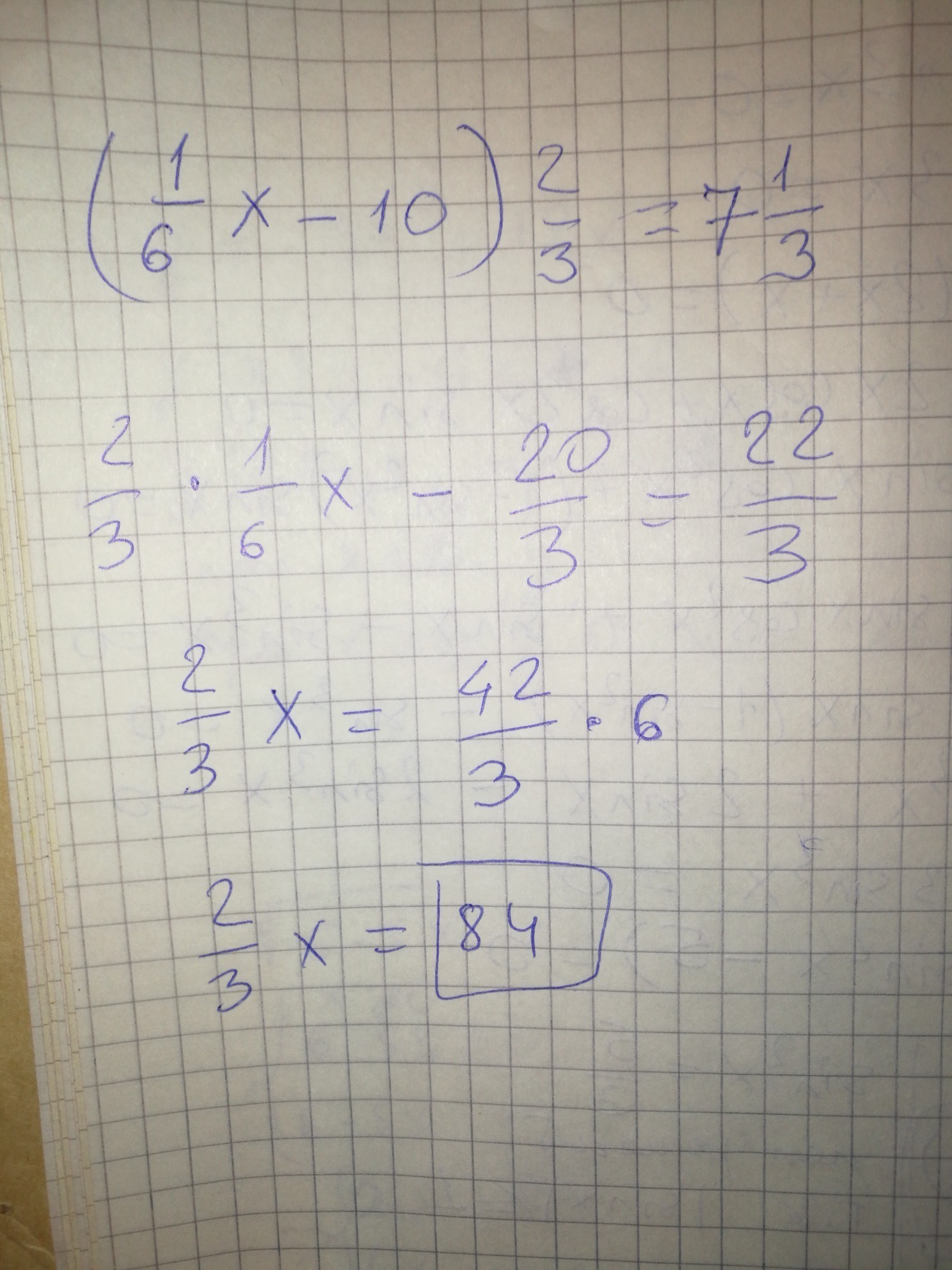 (1/6х-10)*2/3=7 1/3