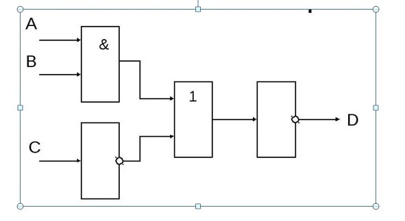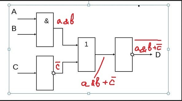 D=¬(A∧B∨¬C)=¬(A∧B)∧C=(¬A∨¬B)∧C