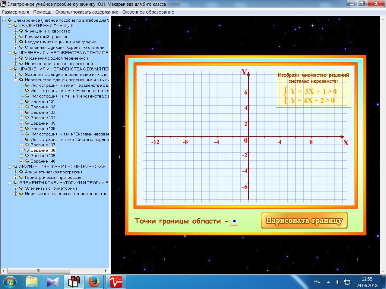 В первом линии графика пунктиром, так как строгое неравенство. Во втором сплошная линия.
