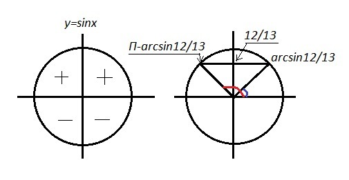 Если sinx=12/13 >0 , то угол х ∈ 1 или 2 четвертям.