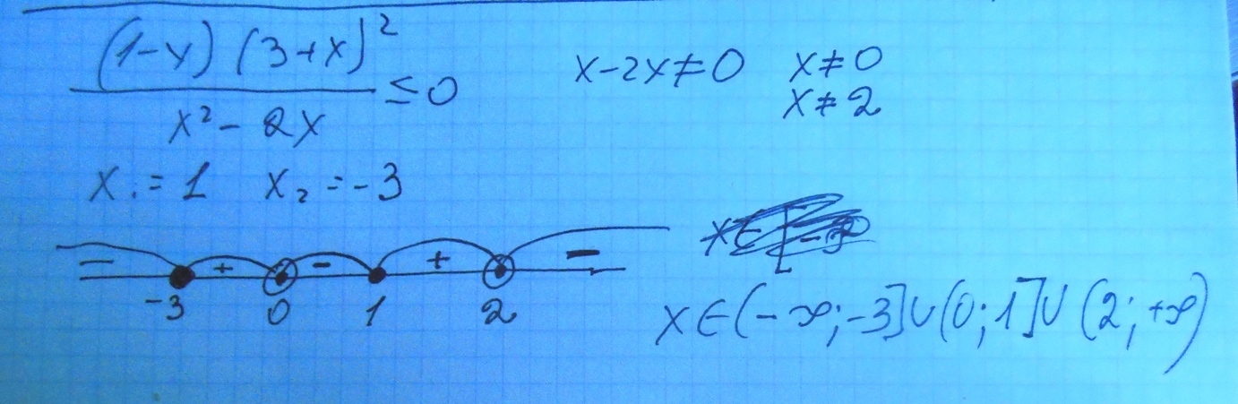 Проверим. x=3: (3-1)(3+3)^2/3*(3-2)=2*36/3*1>0. Знак считаю не к условию, а к преобразованной дроби во 2 строчке...