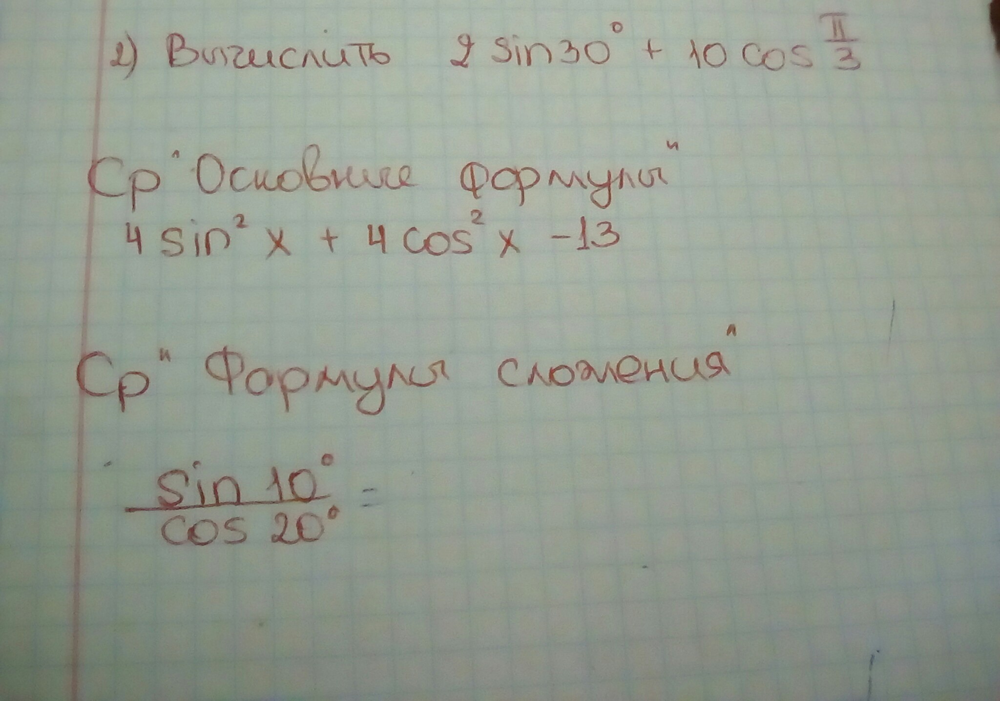 2sin(п/6)+10x1/2 - преобразуем вычислитель