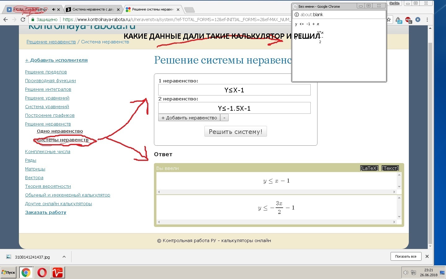 2) y <= -1 + 3*X/2 хотел дробь по красивей написать но придёться так вот ваш ответ
