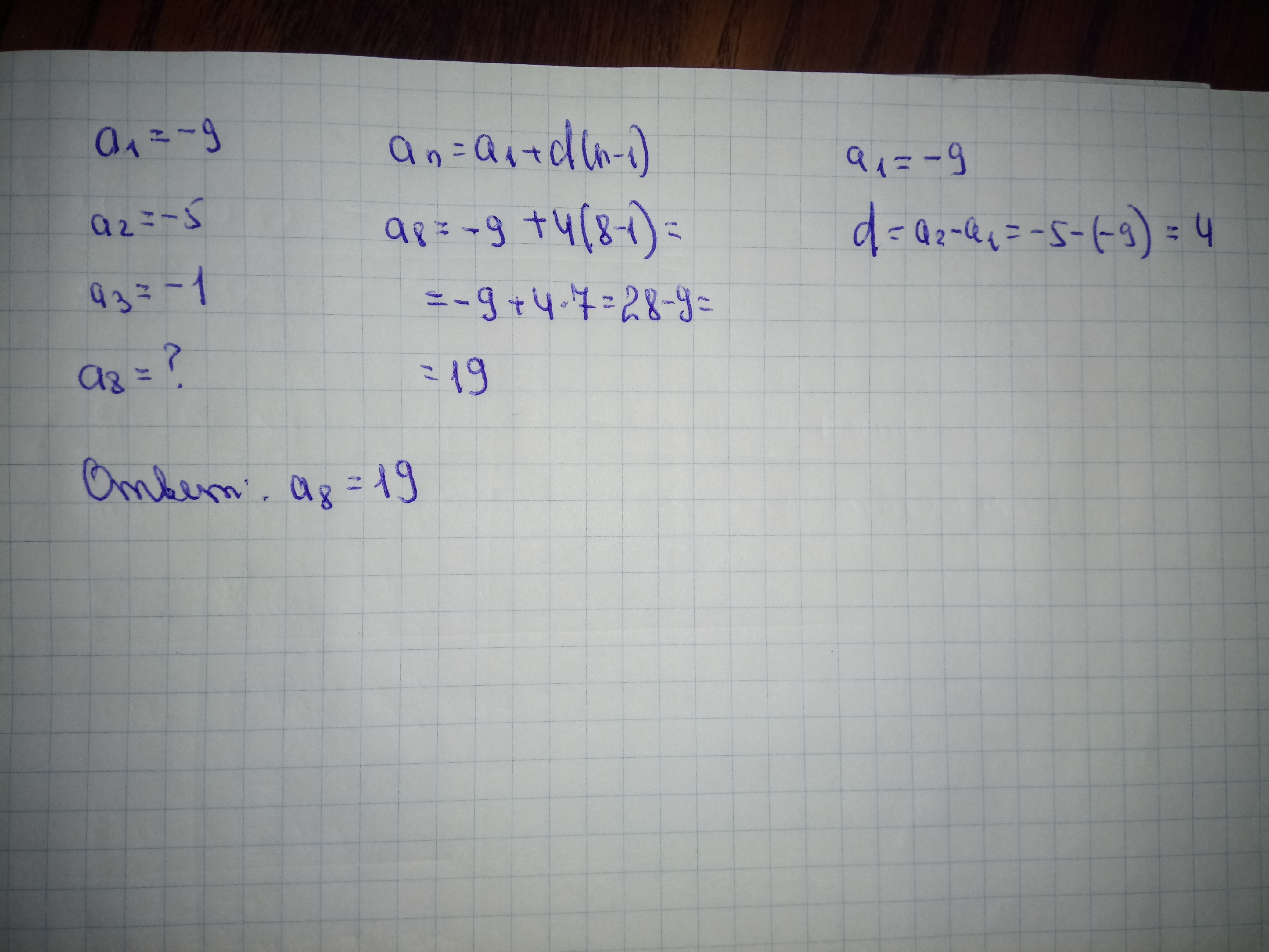 a8 = a1 + 7 d = -9 + 7 × 4 = 19