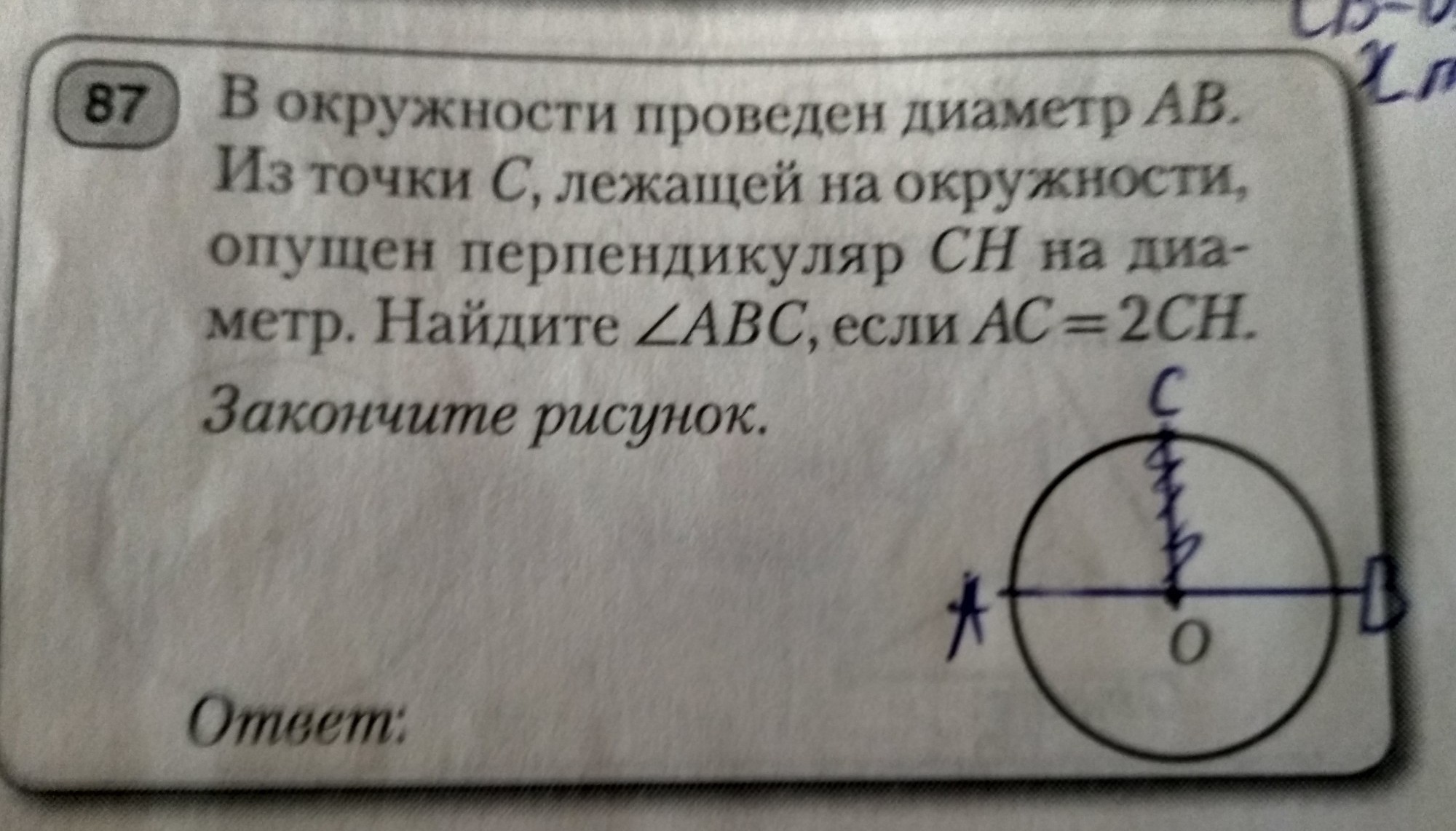 △ACH - прямоугольный (CH⊥AB), CH=AC/2 => ∠A=30°