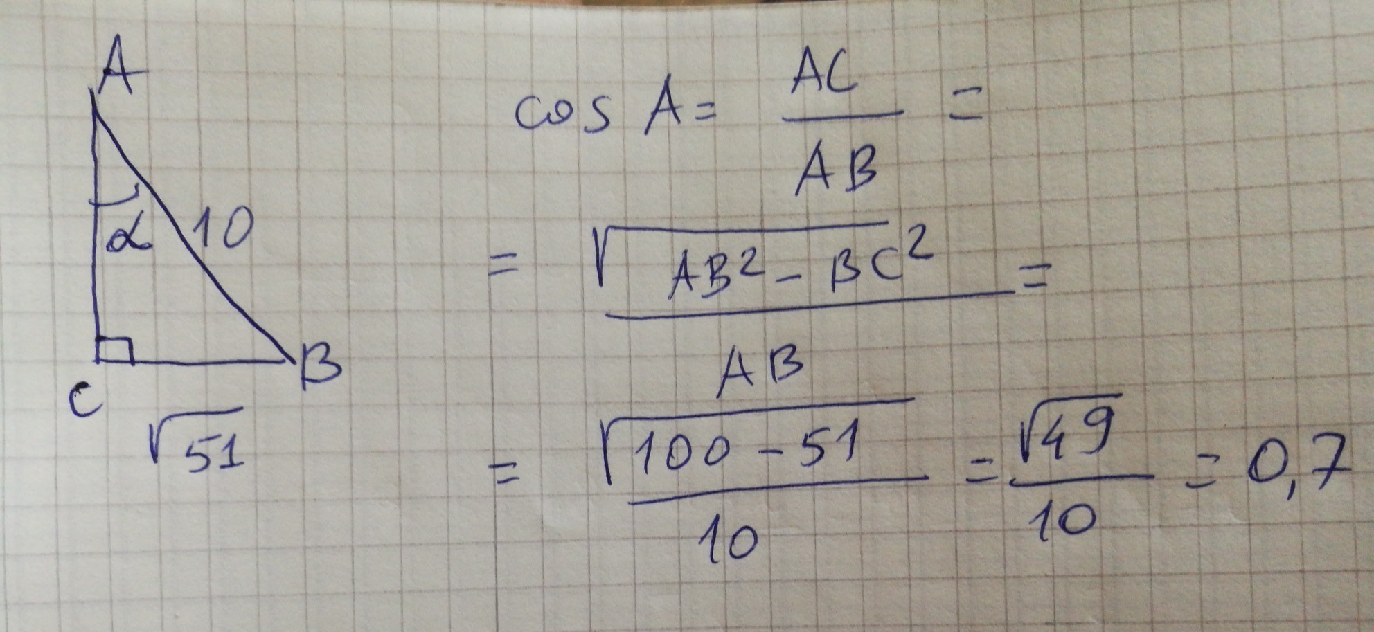 ответ 0.7 решение выше. для нахождения АС использовалась Теорема Пифагора
