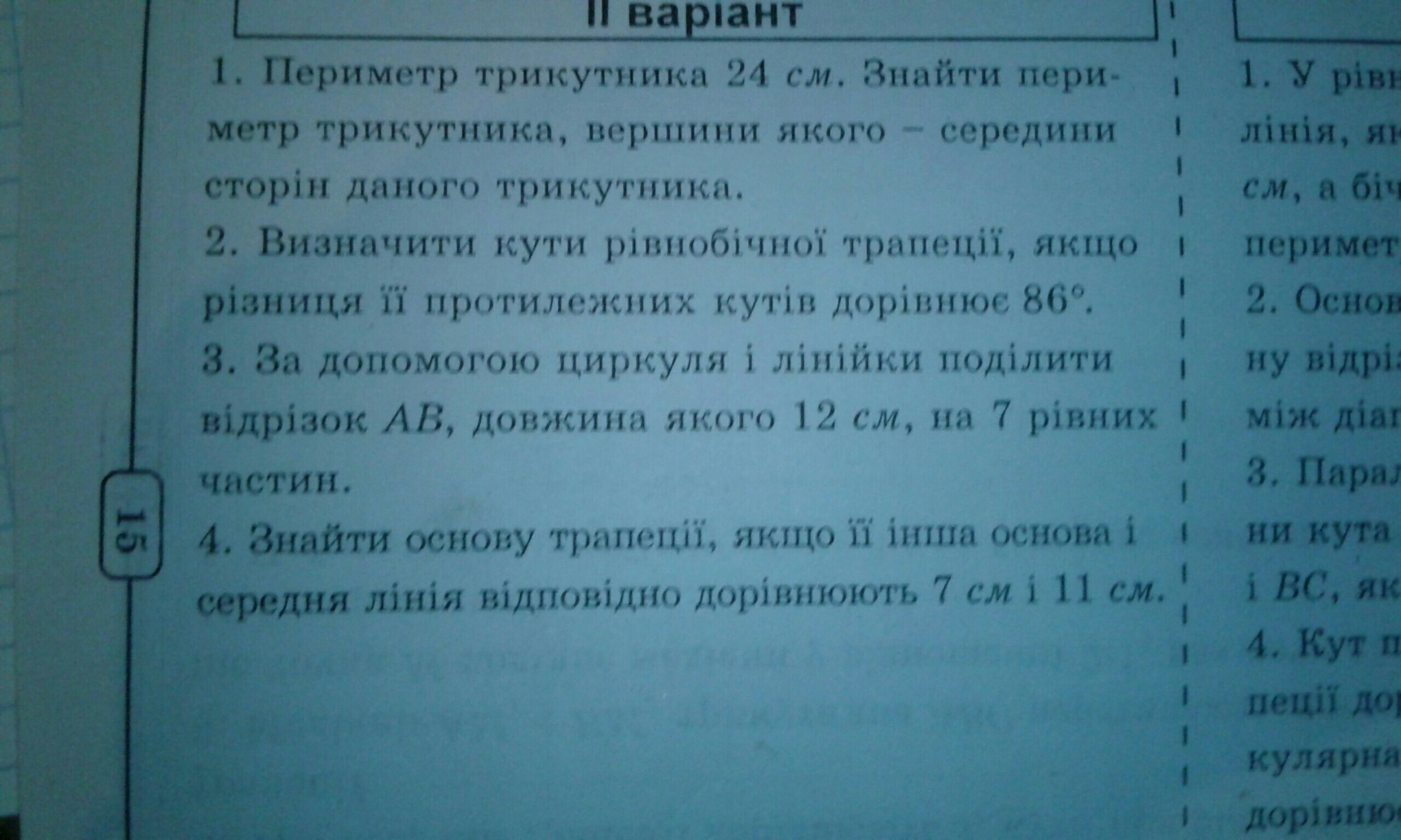 4. средняя линия равна полусумме оснований, поэтому другая основа равна
