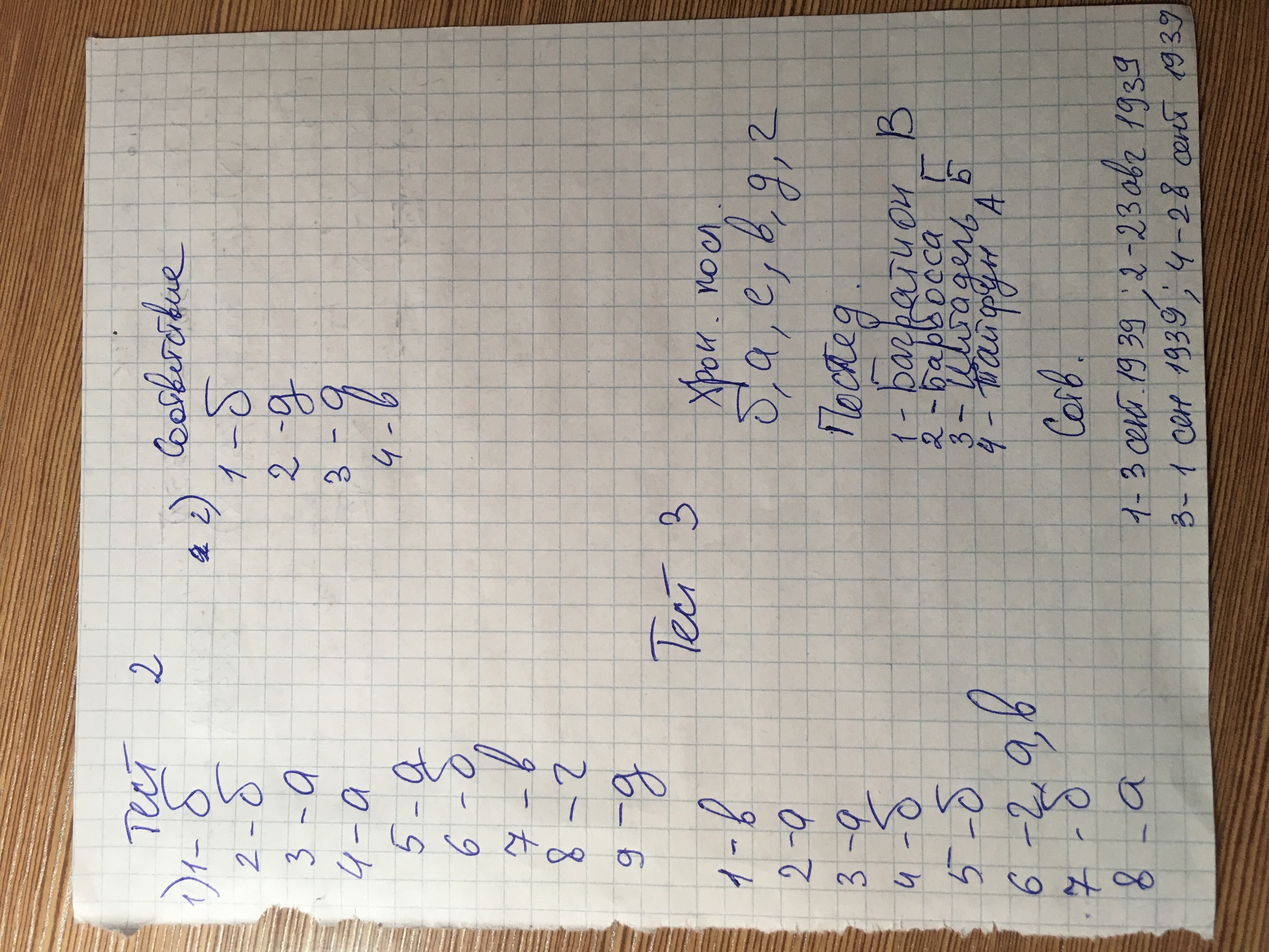 Тест 3. СССР накануне и в годы Великой Отечественной войны