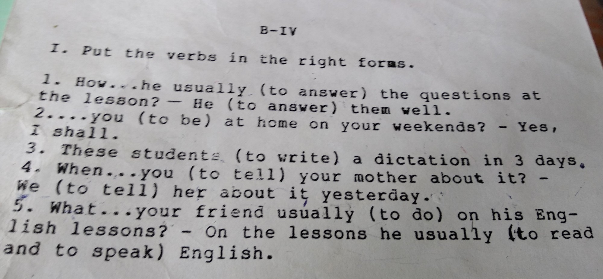 4. When did you tell your mother about it? - We told her about it yesterday.