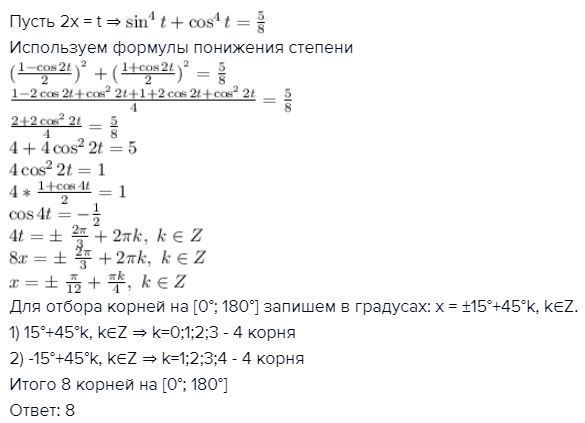 В ответе указать ( в градусах) число корней на промежутке [0; 180] градусов.