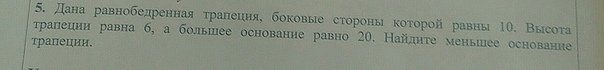 BC = AD - 2*AH= 20 - 2*8 = 20-16 = 4.