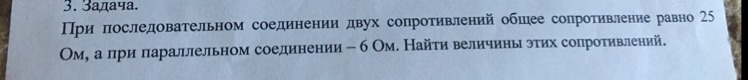 R₁ = 10 Ом; R₂ = 15 Ом; смотрите рисунок.