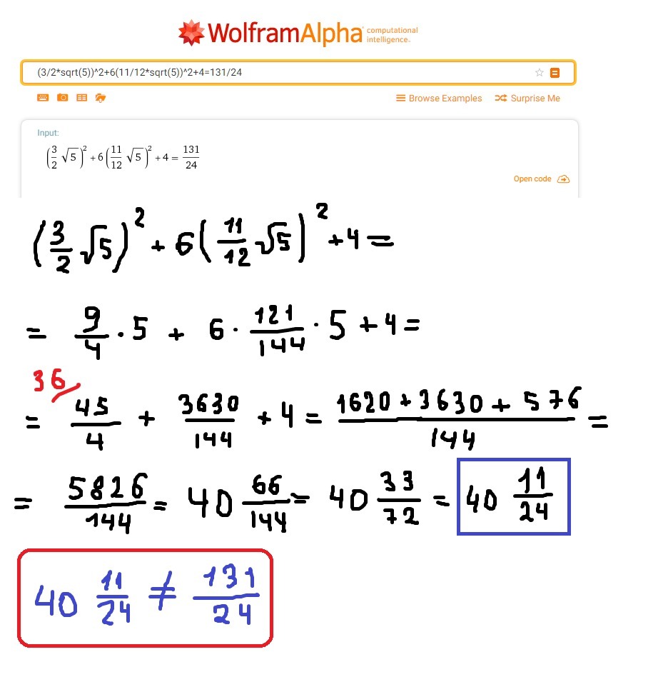 (3/2*sqrt(5))^2+6(11/12*sqrt(5))^2+4=131/24