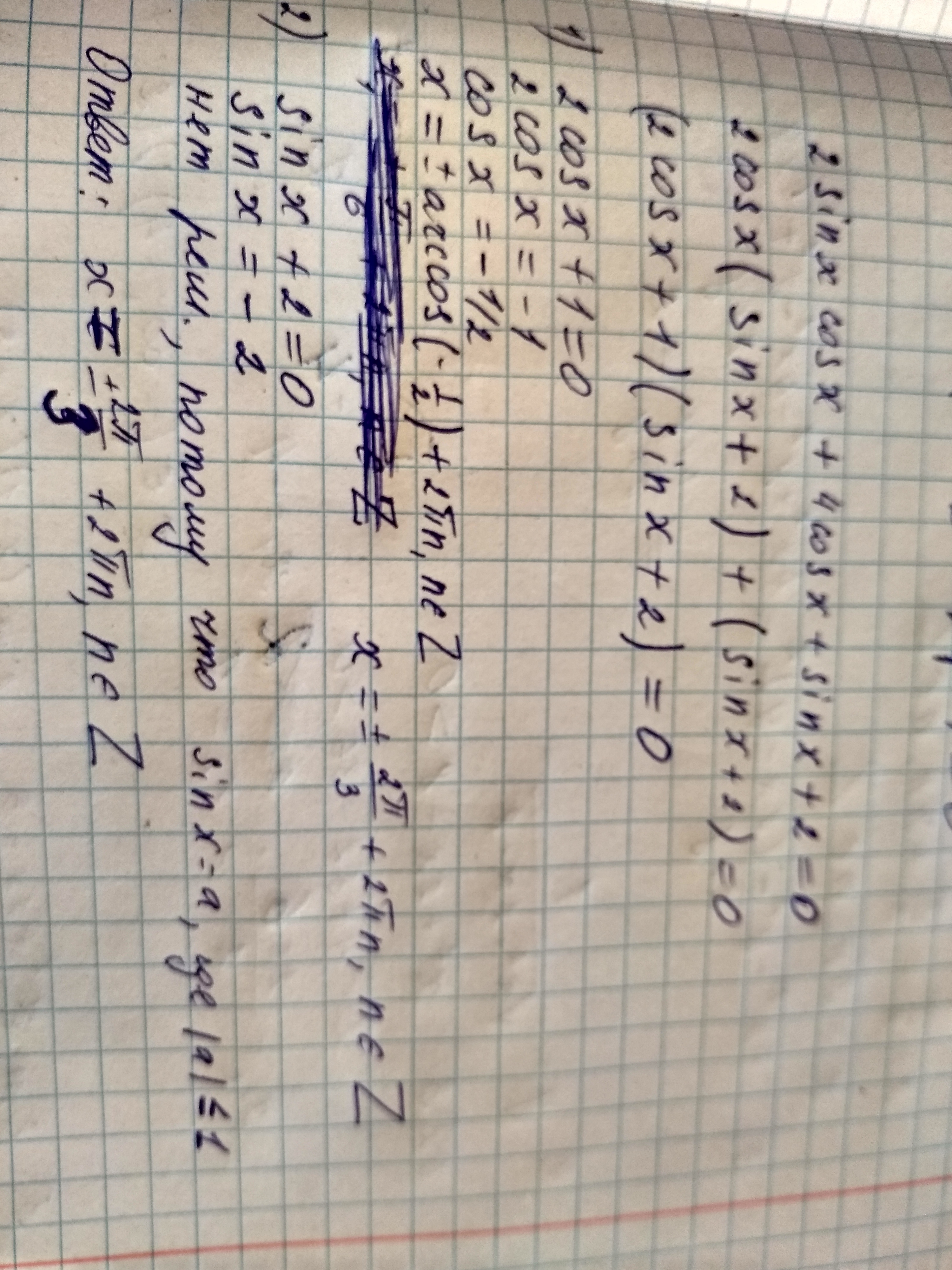 2sinxcosx + 4cosx + sinx + 2 = 0