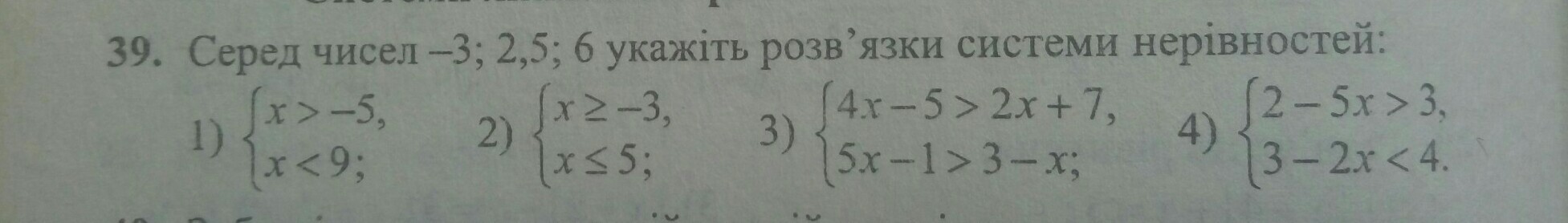 Сначала подбираем ответ к самому сложному неравенству, третьему. Методом подбора узнаем, что к нему подходит только 6. 4 уравнение не имеет ответа из прдставленных чисел, что узнаем подбором. А затем можно увидеть, что 2 и 1 неравенству подходит любой оставшийся ответ