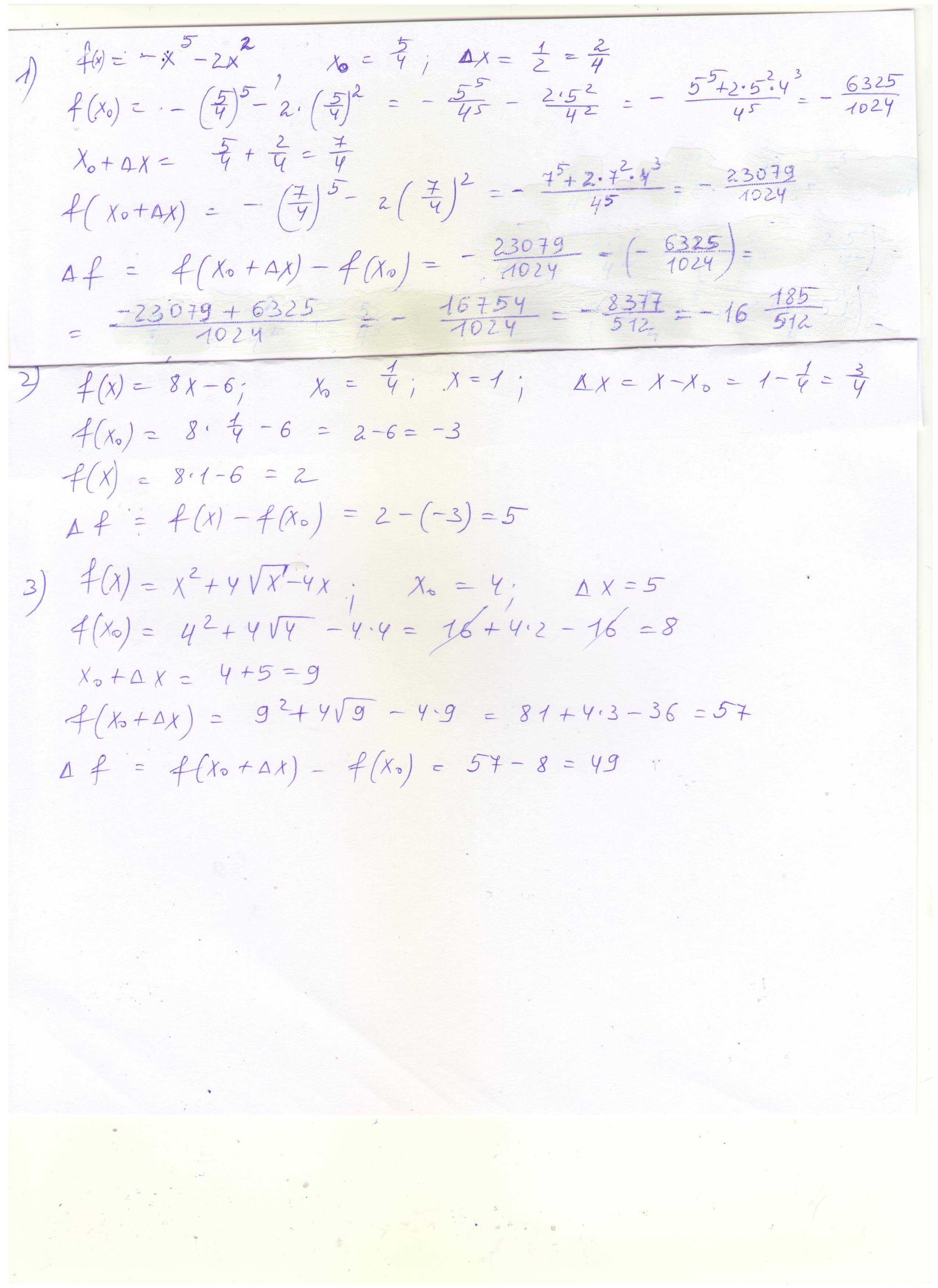 1. Найдите приращение функции f в точке х0 если f (x)=-x5-2x2, x0=5/4, дельфа х =1/2